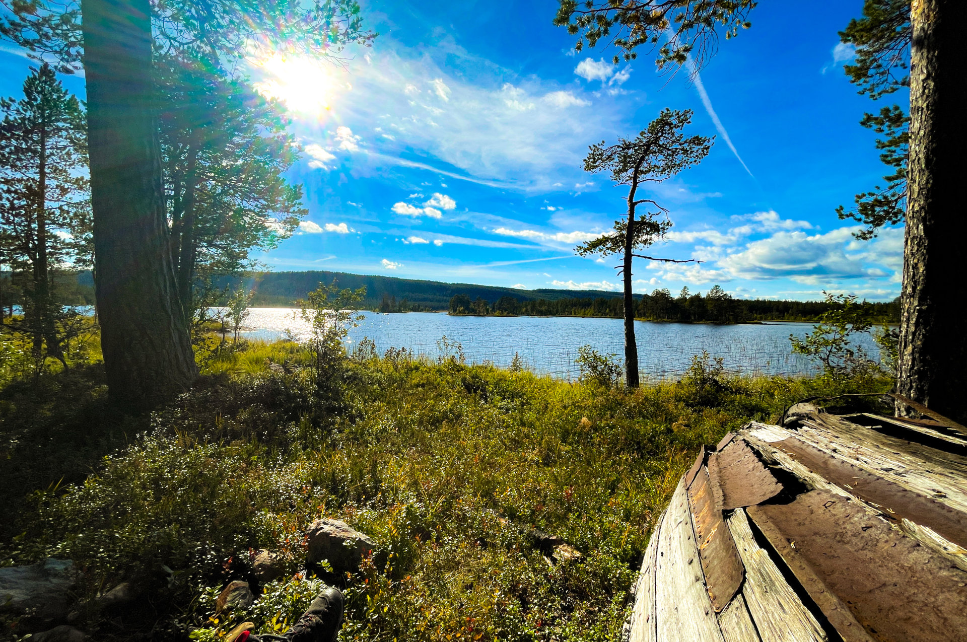 Oude vissersboot bij de Stortjärnen. Een mooie mountainbiketocht of bereikbaar met een terreinwagen en een korte wandeling.