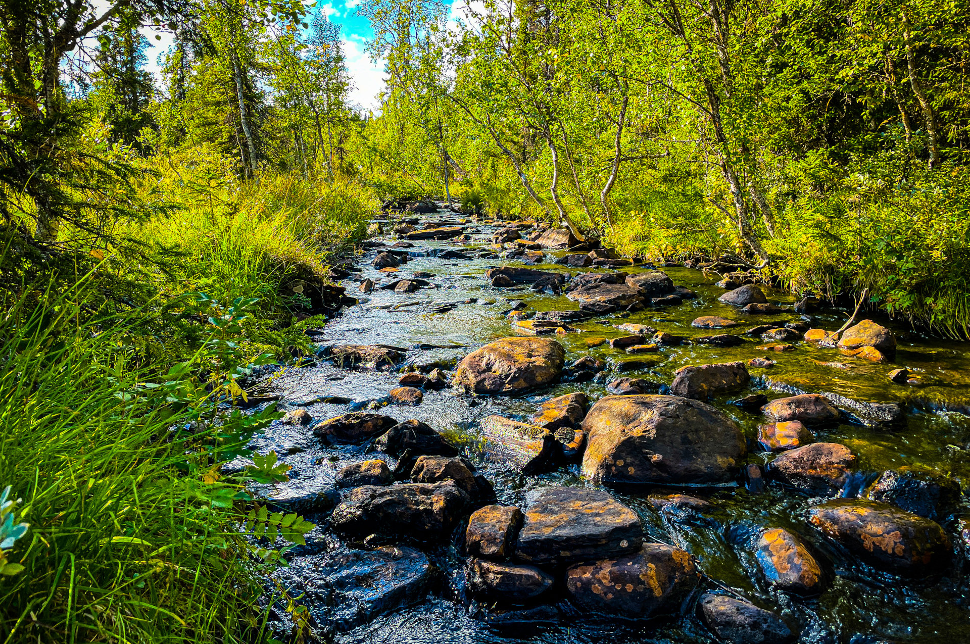 Aan de bovenloop van onze rivier Galån in het berkenbos