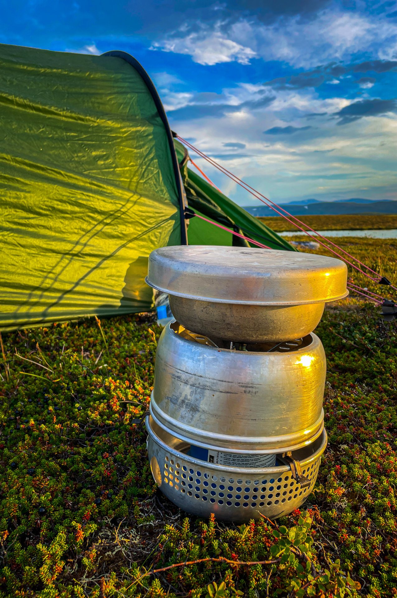 Kamperen in Oviksfjäll en lekker warm eten van de Trangia-fornuis