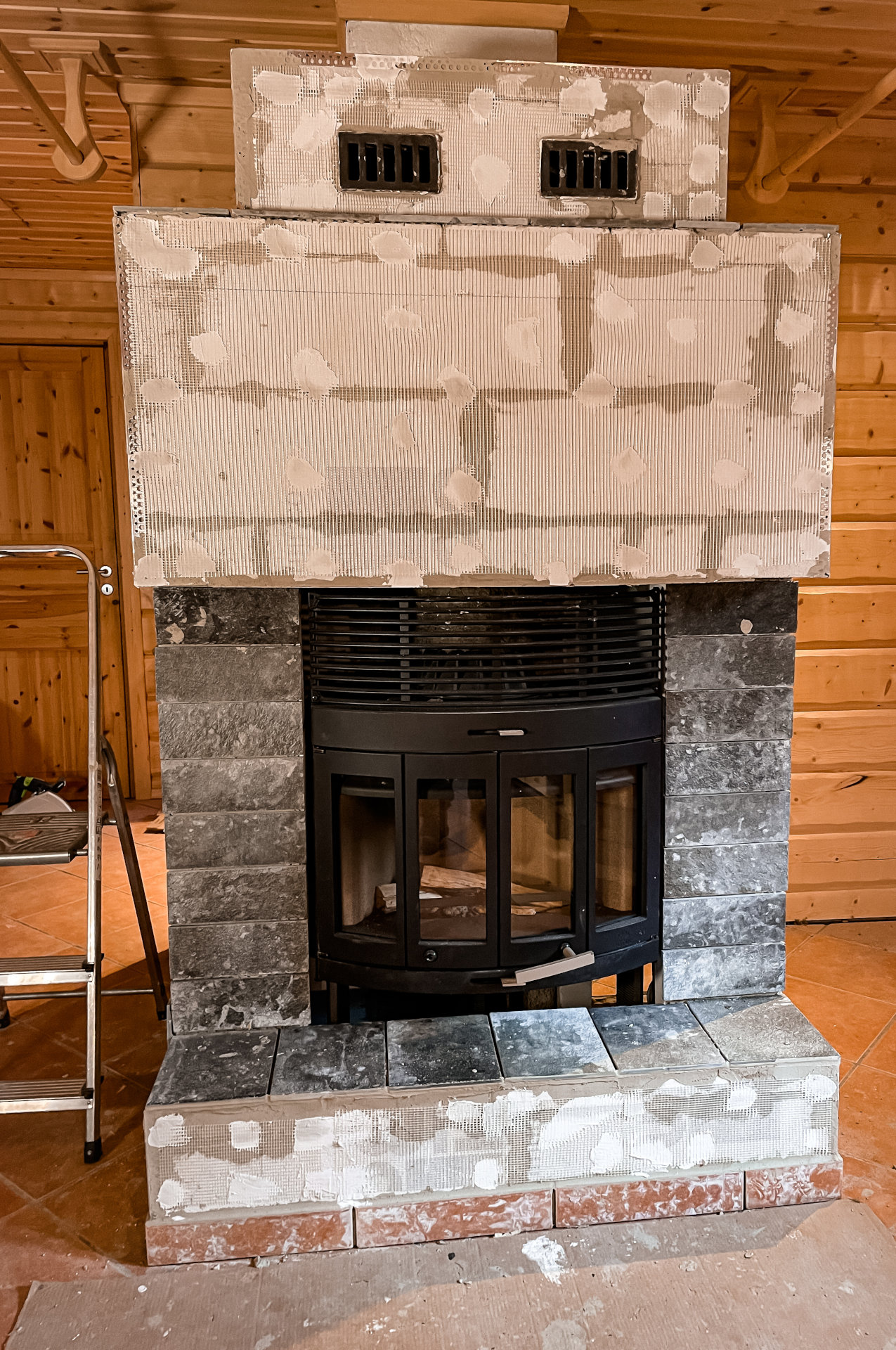 We plaatsen een nieuwe, efficiëntere houtkachel in het huis Freja