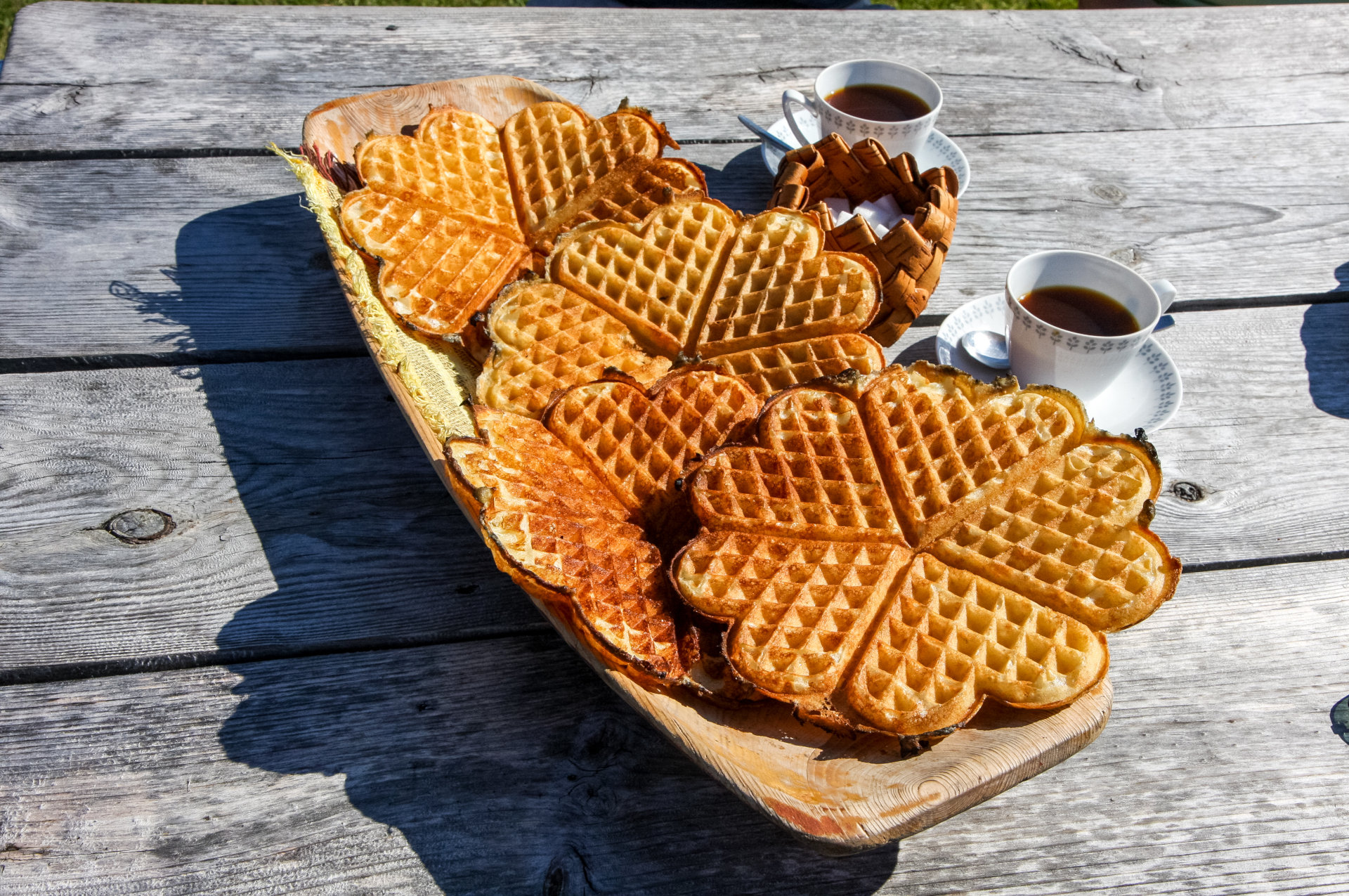 Een korte tocht, maar toch populair, want in de zomer worden er een paar weken lang koffie en wafels – van de houtoven – op de bergweide geserveerd. Ook zijn er Sami‑specialiteiten als een kleine "lunch". In de zomer zijn er ook koeien en geiten die zich altijd verheugen op nieuwe gasten.