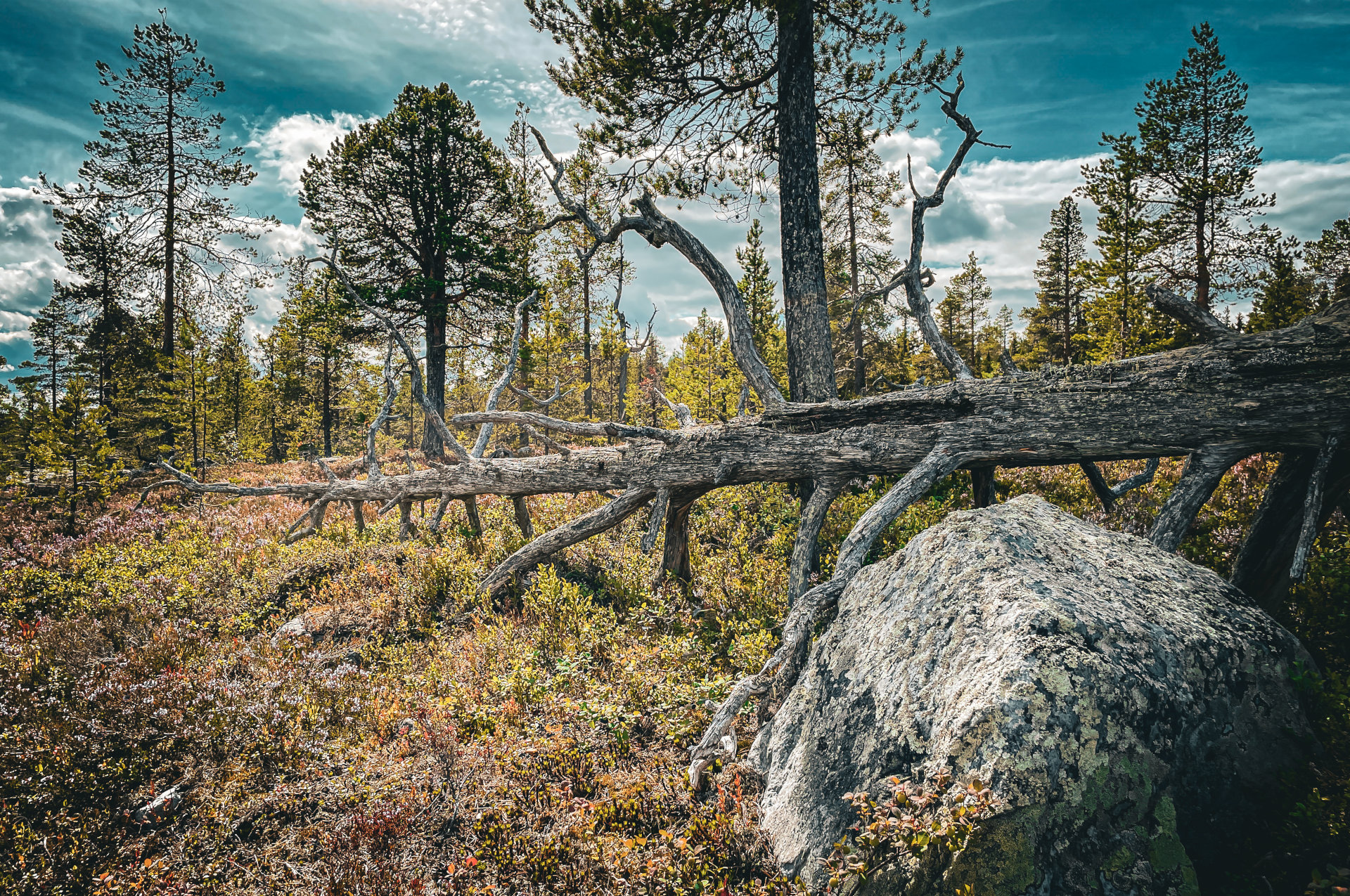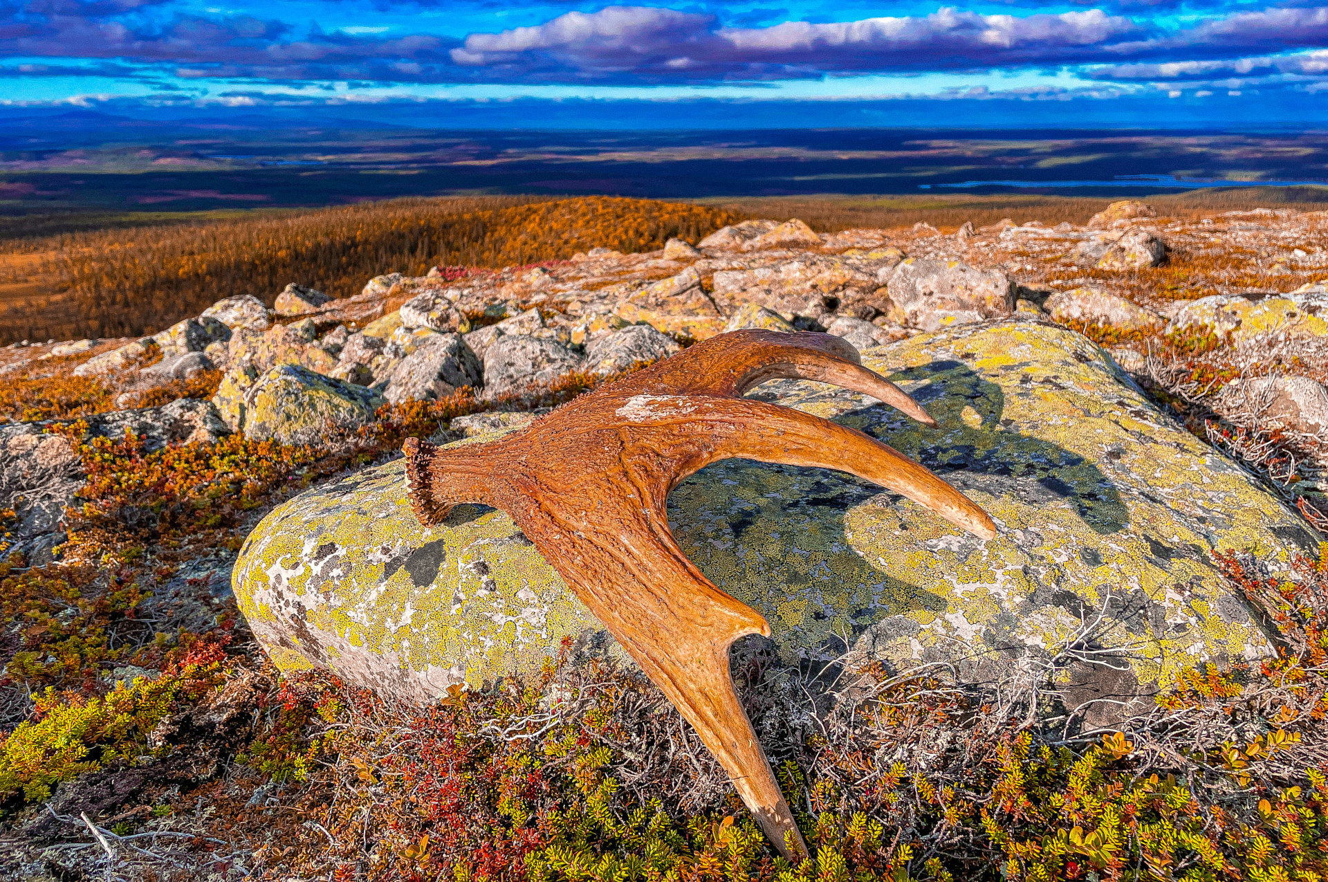 Blaubeersammeln am Stortjärnberget. Rentiergeweihe findet man auch abseits der Pfade.