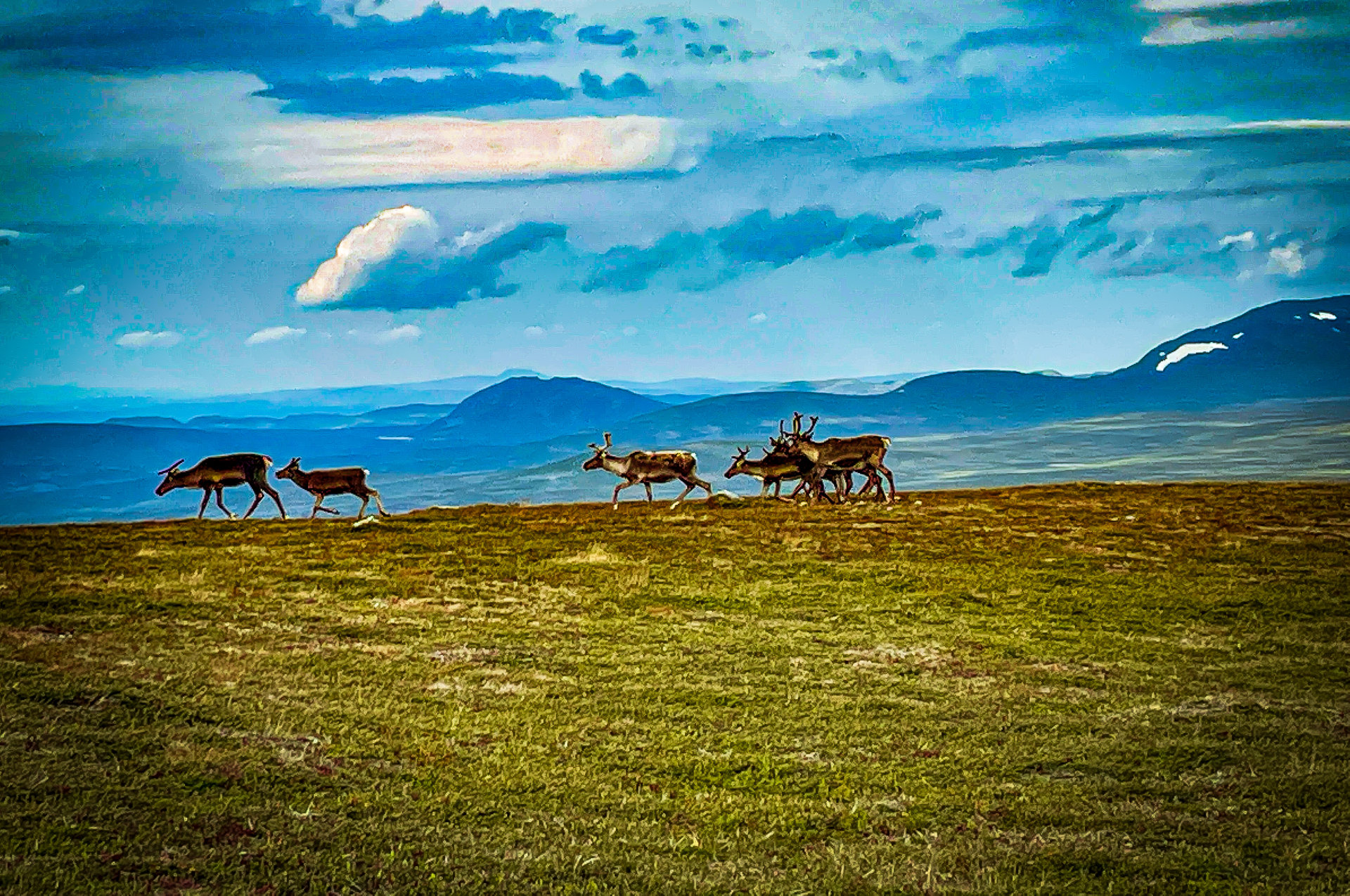 Viele Rentiere sind am Ende des Sommers in den Bergen unterwegs