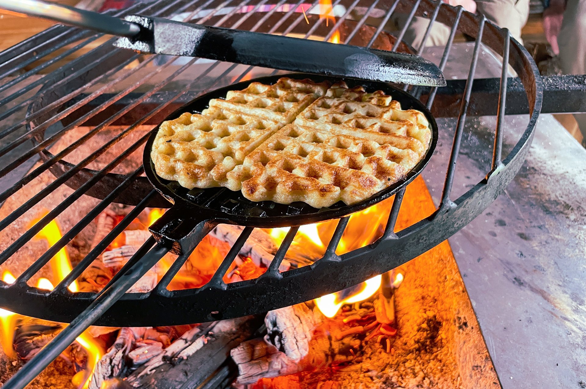 Die Waffeln aus der Gussform über dem Feuer sind die Besten