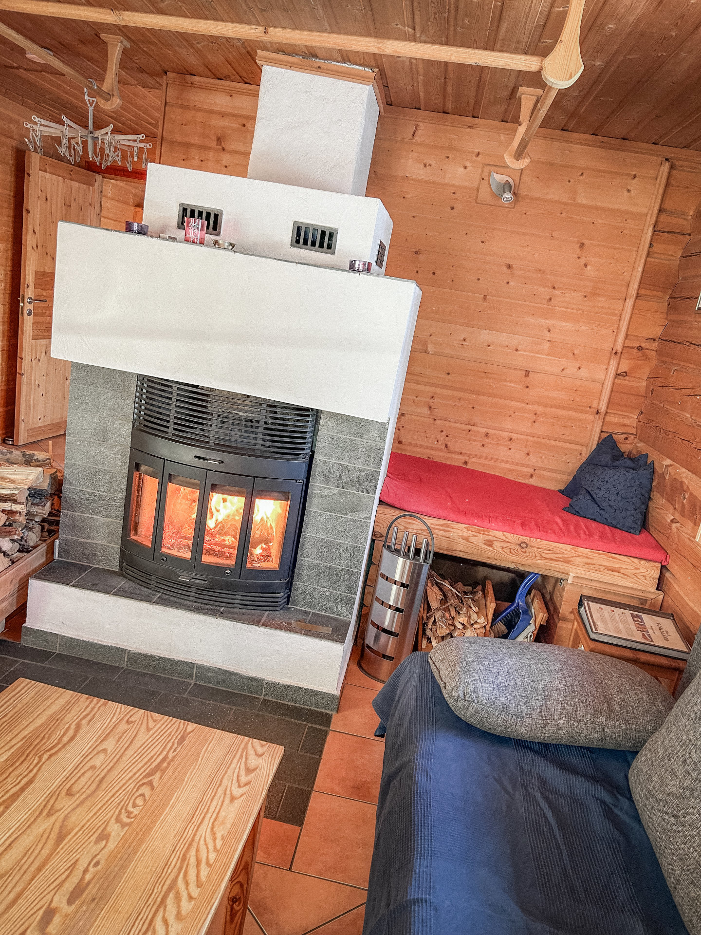 Kaminfeuer und Lese-Laminecke im Ferienhaus Tor